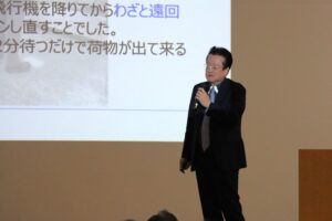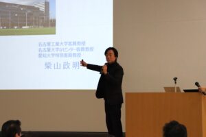 次いで、DGAワークショップで講師を担当されるアジナセレクト 林 俊秀氏と愛知県 経済産業局顧問の柴山政明氏のご講演がありました。まず、アジナセレクト 林 俊秀氏の「右脳的思考法~マーケットイン型製品開発に向けたデザイン思考の重要性~」のご講演では、DGAワークショップでも取り上げられるデザイン思考の考え方が紹介され、学生たちも多くの関心を寄せたようです。