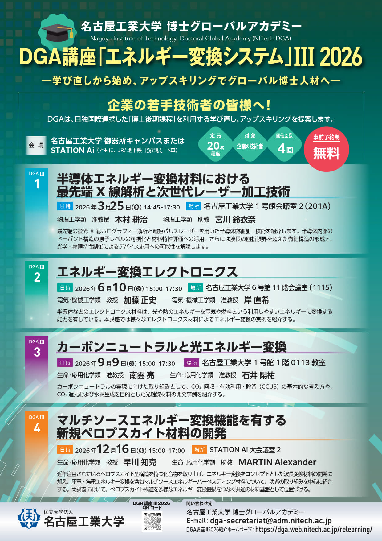 DGA講座「エネルギー変換システム」III 2026ー 学び直しから始め、アップスキリングでグローバル博士人材へ ー